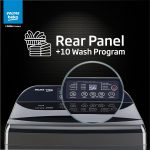 The control panel is placed at the back of the machine, making it easy to reach and use. This design helps protect the buttons from water spills and adds a neat look to the washing machine.