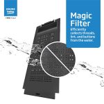 The magic filter efficiently collects threads, lint and buttons from the water.