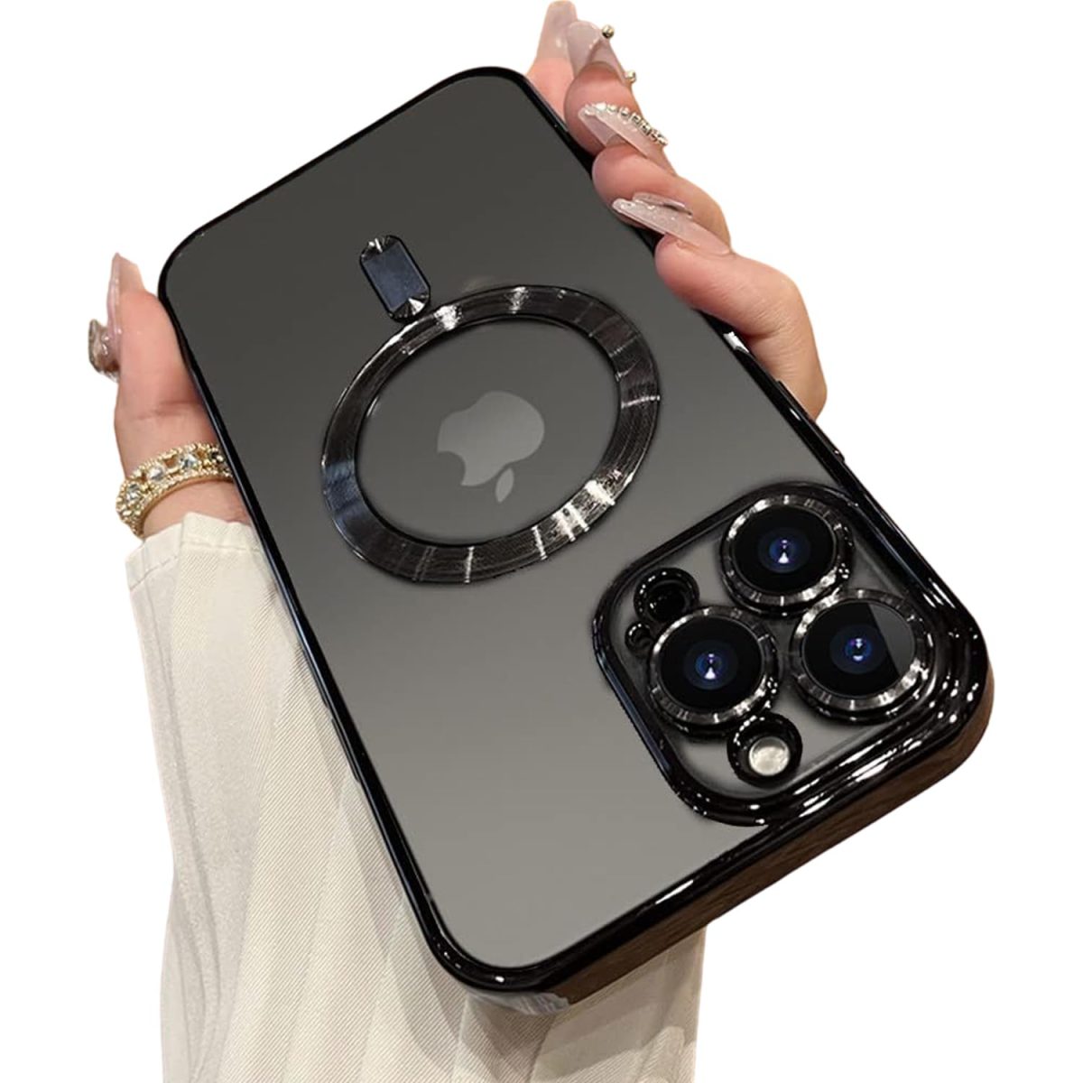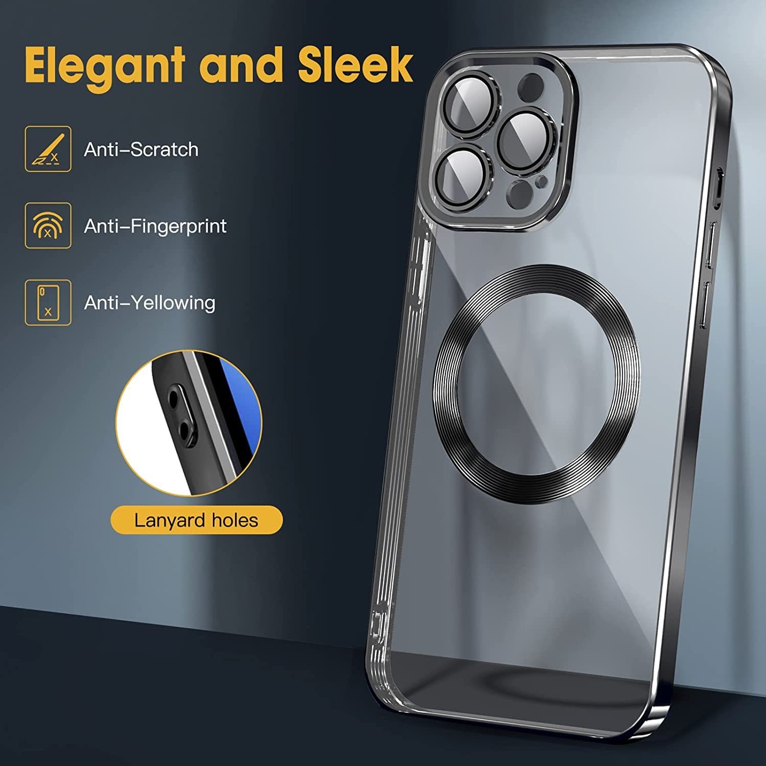 VONZEE Electroplating Transparent Clear Logo TPU Cover for iPhone 13 Pro Max Case 6.7 Inch, Compatible with Magsafe, Full Body & Individual Camera Protection for Each Lens for Men & Women (Black)