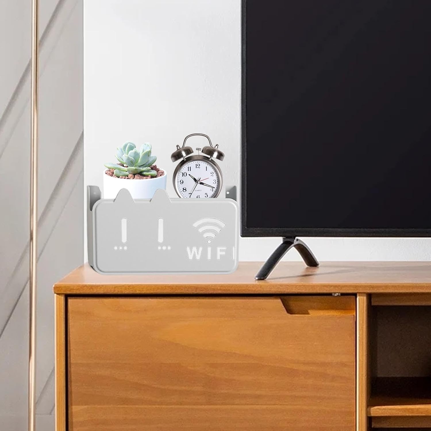 Durable & Stable :Wifi Router Storage Box is made of thickened ABS sheet, front and rear support, safe and stable, double the load-bearing without pressure.The whole frame is polished with rounded corners, and the arc is beautiful while effectively preventing bumps and scratches.