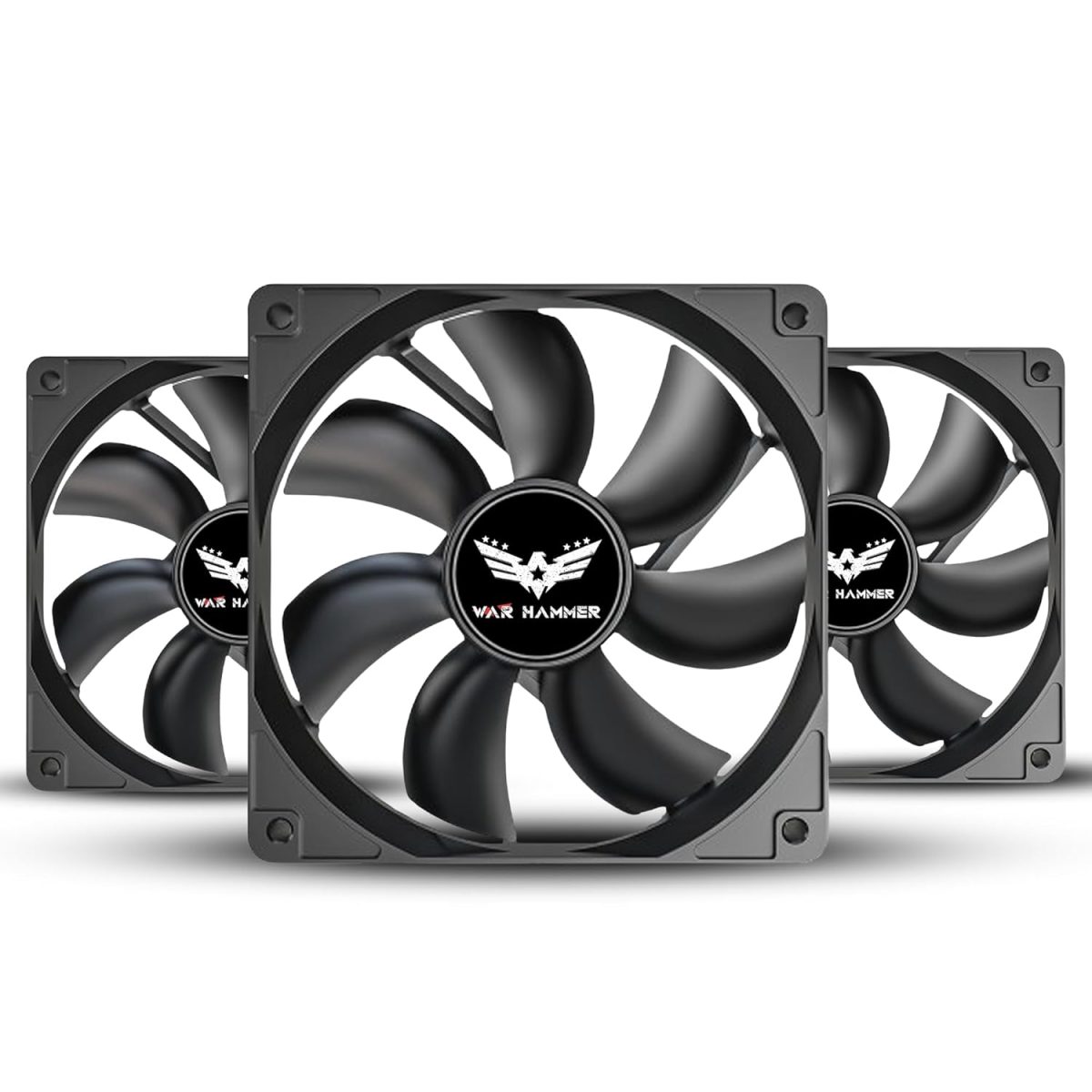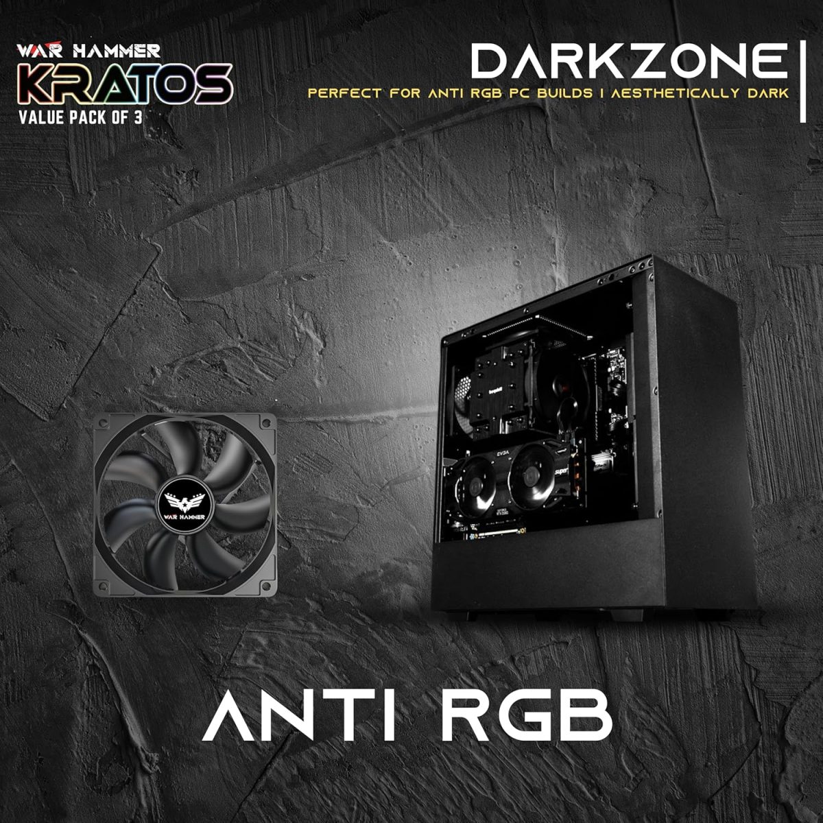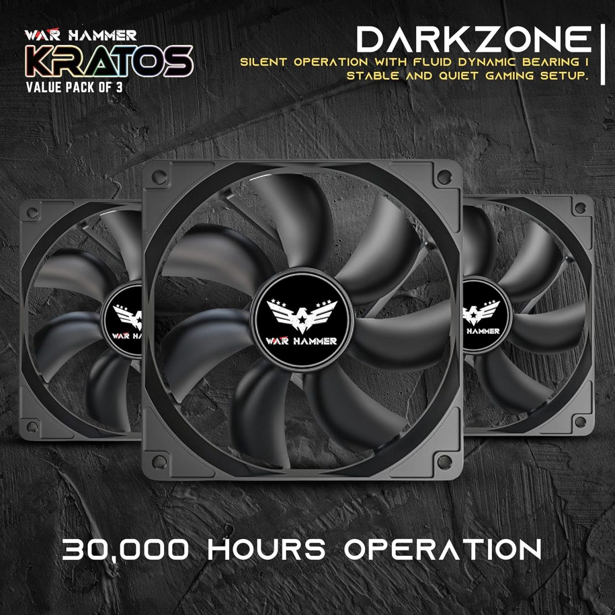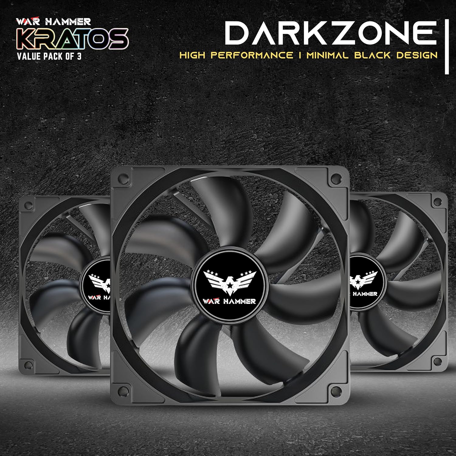 WAR HAMMER Kratos Darkzone 120mm 3 IN 1 Case Fan Kit – Black, High Static Pressure, MOLEX Control 1500 RPM, 73.6 CFM Airflow (Darkzone Non RGB, 3)