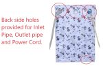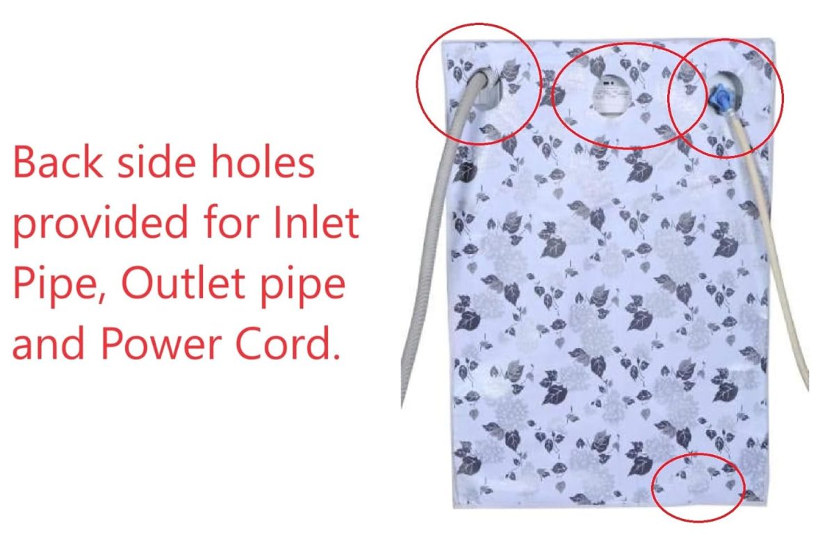 Holes provided for inlet Pipe, Outlet pipe and Power Cord. You will not have to face any problem while connecting the inlet pipe, the outlet pipe and the power cord to your washing machine with this cover on. It comes with dedicated holes that are strategically placed for this purpose.