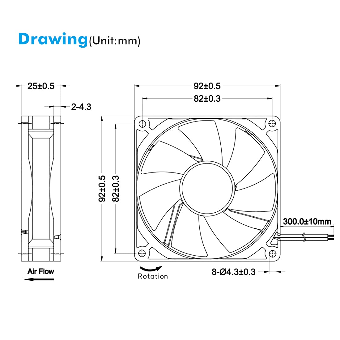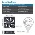 High Perfomance: 92mm x 92mmx 25mm / 3.62×3.62×0.98 in. per fan ; Rated Voltage:12V 0.1A; Speed: 1800RPM; Air flow: 39.8CFM; Noise:25dBA; Bearing type: Sleeve Bearing ; Life: 35000 hours