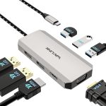 【⭐Versatile 7-in-1 Dock】The WAVLINK powerful 7-in-1 multiport adapter offers a range of connection options including dual DP ports (4K@60Hz), one HDMI port (4K@60Hz), one VGA port (1080P@60Hz), and 3x 480Mbps USB2.0-A ports. With this dock, you can easily upgrade your workstation using just one type-C port, resulting in improved productivity. *Note: Please ensure that the type-C port on your laptop supports video output.