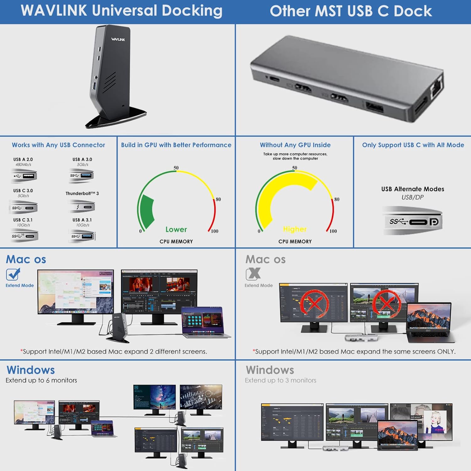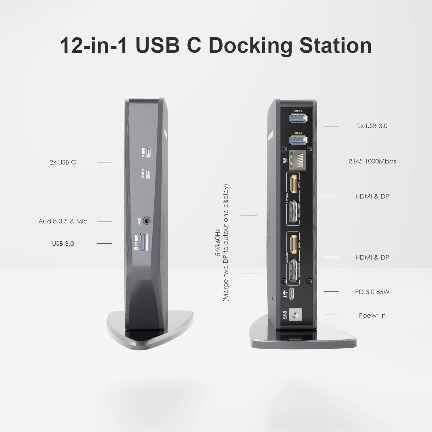 【Dual 4K or Single 5K Display】 Support up to Ultra 5K@60Hz(with dual Display ports), or dual 4K display(any two of the HDMI and Display ports). Enjoy HD for your multitasking work, gaming, conference or other various scenarios.