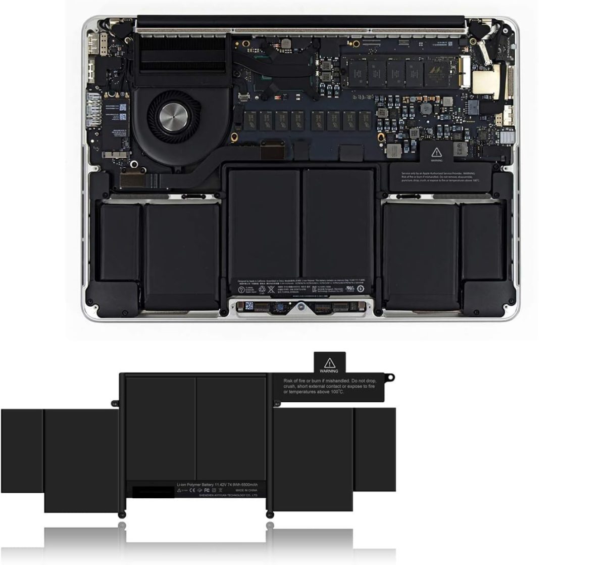 The Mac Pro is tightly integrated with buckle, fixing battery to ensure safe and efficientPlease take off the power interface carefully with the small blue disassembly tool