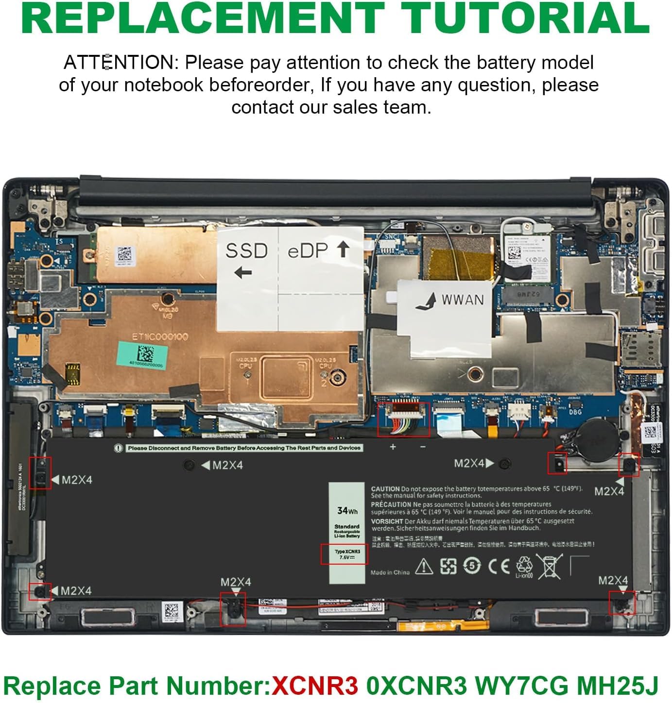 Compatible Models : for Dell Latitude 13 7370 Ultrabook Series. Compatible Part Number -: XCNR3 0XCNR3 WY7CG WV7CG 0WV7CG