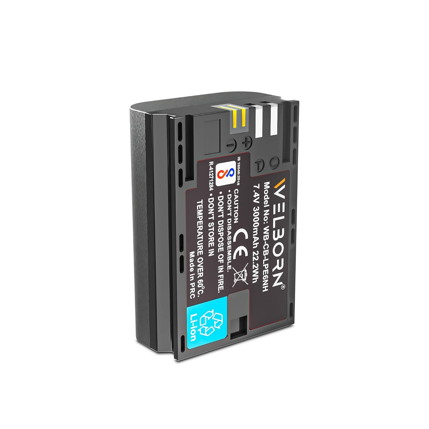 The Welborn LP-E6 Lithium-Ion Battery Pack works with all cameras and camcorders that take the Canon LP-E6N or LP-E6.