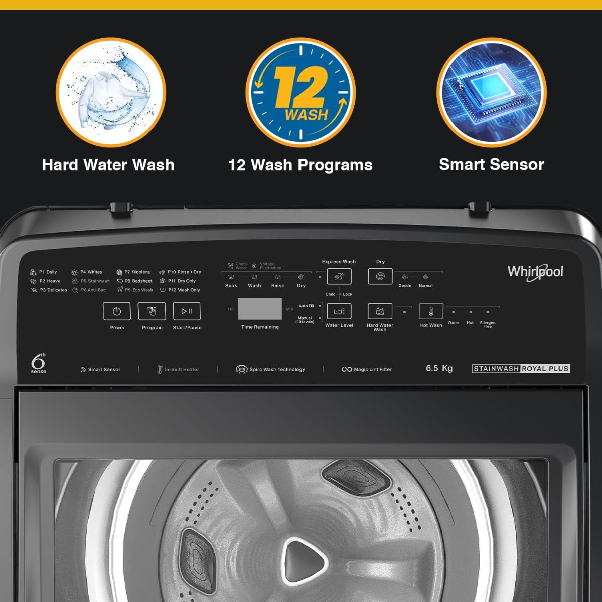 Fully Automatic top load washing machine : Affordable with best wash quality and easy to use with In-Built Heater Capacity: 6.5 kg (Suitable for Small to Medium sized family) Energy Rating 5 Star: Best in class efficiency | Energy consumption – 0.0093* KWh/kg/cycle (Please refer BEE label for more information), Model/Year : VA Q 65 5S/2024 Special Feature : In-built heater, Removes Up To 50 Tough Stains, 3 Hot Water Modes, Removes Up To 48 Hour Old Stains, Additional Features: Hard Water Wash Program, ZPF Technology, Express Wash, Delay Wash, Auto Tub Clean, Spiro Wash In Box : Washing Machine, Inlet Pipe, Detergent Cup, Rat Mesh, Drain Pipe, Drain Hose with Clamp Drum / Pulsator type & Body material:Stainless Steel Warranty: 2 Years Comprehensive Warranty and 10 years additional warranty on Motor & Prime Mover Max 740 RPM – higher spin speeds helps in faster drying Product Dimensions: 58D x 54W x 101H Centimeters