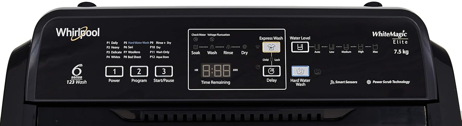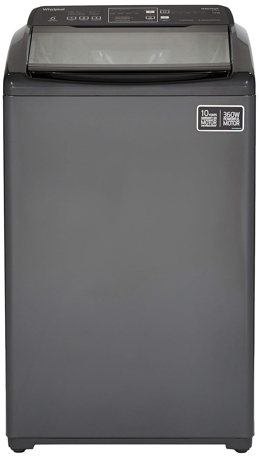Whirlpool 7.5 Kg 5 Star Fully-Automatic Top Loading Washing Machine (WHITEMAGIC ELITE 7.5, Grey, Hard Water Wash)