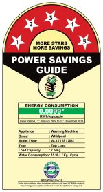 Whirlpool Washing Machines come with 5 Star Energy rating for best in class water & energy efficiency.