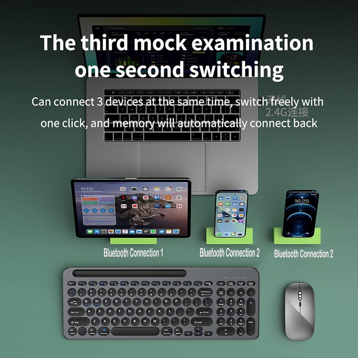 【2.4G & Bluetooth 5.0 and 3.0 Keyboard and Mouse】 multi-device wireless keyboard and mouse supports 3 devices to connect at the same time, (2.4G wireless + Bluetooth 5.0 + Bluetooth 3.0). Plug-and-play 2.4G receiver, no need to install additional software or drivers, You can type, switch and keep typing!