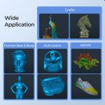 HIGH QUALITY & FAST SCANNING – Up to 0.1mm accuracy ensures better dimensional accuracy and captures more details;The built-in specific 3D imaging ASlC chip provides computing capability,enables fast scanning for medium and large objects, Without scanning spray, you can scan cars, carparts, tires and other black/metal objects to getthe desired model effect.