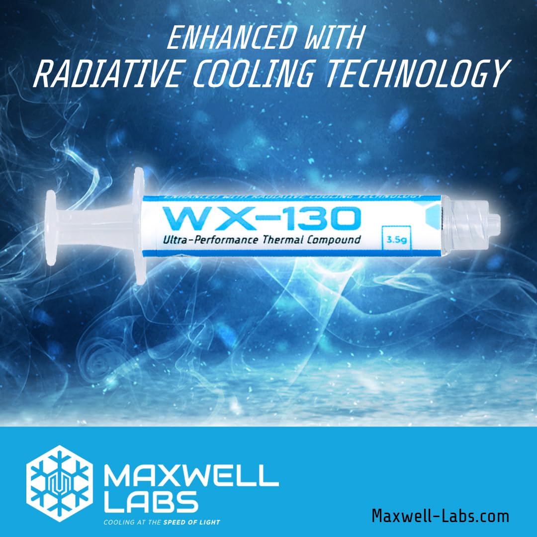 Unlock the Power of Next-Gen Computing with Wx-130 thermal paste. Experience high-performance computing and gaming like never before with the Wx-130 thermal paste from Maxwell Labs. Enhanced with radiative cooling technology, this top-tier thermal compound is an invaluable tool for any tech enthusiast. Designed with AI-driven materials science, the Wx-130 not only addresses performance but also aims to redefine the thermal footprint in the domain of powerhouse computing.