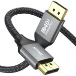 【Premium Durability】Quality nylon braided jacket with 10,000+ bend lifespan provides you with a reliable DisplayPort to DisplayPort cable. Multiple shielding, 24K gold-plated connectors, 28 AWG tinned copper, plug & play, Reliable interference-free data transmission, provide both superior cable performance and reliable connectivity.
