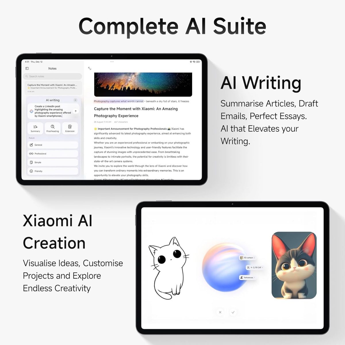 Most Advanved Snapdragon 7 Series Processor – Power through tasks with the Snapdragon 7+ Gen 3, offering upto 2x better performance for smoother multitasking and gaming. As the most advanced processor in the Snapdragon 7 series, it supports LPDDR5X memory and UFS 4.0 storage for lightning-fast data access. *as compared to previous gen xiaomi tablets