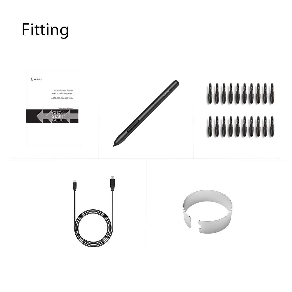 ✅ [Compact, Portable size]: XPPen StarG640 is a compact graphic tablet with active area of 6×4 inches and thickness of just 2mm. It’s a comfortable canvas to create on, while still being easy to carry. Perfect alternative to a mouse. ✅ [8192 levels of Pressure sensitivity]: Best-in-class 8192 levels of pen pressure sensitivity allows you to create variations in line width and opacity, giving you a real pen-on-paper feel. ✅ [Battery-free stylus]: Advanced P01 battery-free stylus does not require charging, allowing uninterrupted usage while delivering a natural pen experience. Also, no batteries means no clumsy wires and a greener choice. ✅ [Ergonomic Stylus]: One-click toggle function on the stylus between pen/eraser improves your efficiency and speed of usage. Stylus supports 60 degrees of tilt and is also equipped with automatic line correction and intelligent anti-shake function to create the best drawing experience. ✅ [Connectivity]: It features type-B input design, easy to plug in and out. Usable with both left and right hands. ✅ [Supports All Design Softwares]: XPPen drawing tablets are software neutral, meaning they work seamlessly with ALL commonly used design softwares including AdobeCC, Krita, Corel, Clip studio, Blender, etc. ✅ [Great for Digital Writing]: Use XPPen graphic tablets for teaching online, note-taking, annotations, digital signatures, etc. Compatible with ALL writing softwares like MS Teams, Word, Powerpoint, Zoom, etc. ✅ [Windows, Mac & Linux support]: Star G640 is compatible with Windows 10/8/7, MacOS X 10.10 (or higher), and Linux. ✅ [Technical support]: We offer a pan-India 12 months replacement warranty on XPPen graphic tablets. For technical support, call us on our toll free number or raise a ticket on our website. ✅ [Complete Bundle]: Standard package contents include a Pen Tablet, P01 Passive Pen, USB cable, Pen Clipper, a Quick Guide, and 20 Pen Nibs. Free driver is also available for download.