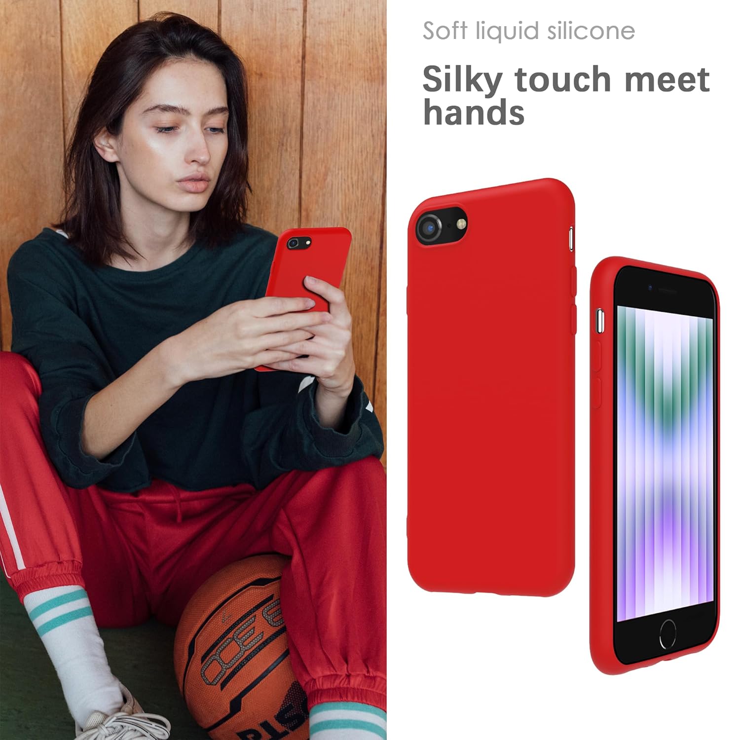 YATWIN Silicone Back Case for iPhone SE 2020/2022, iPhone 7/8, Soft-Touch Phone Back Cover for Apple iPhone SE 2nd 3rd Generation – Red