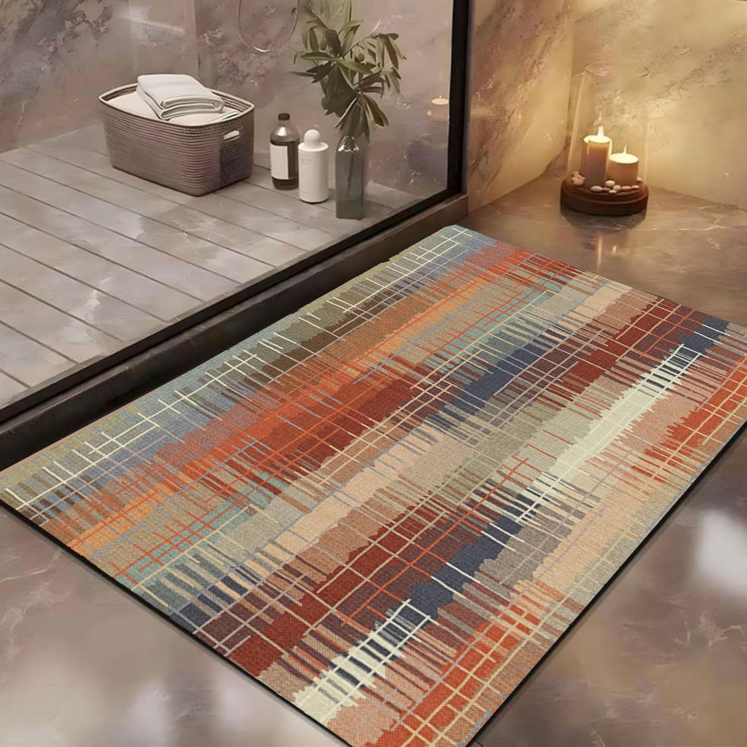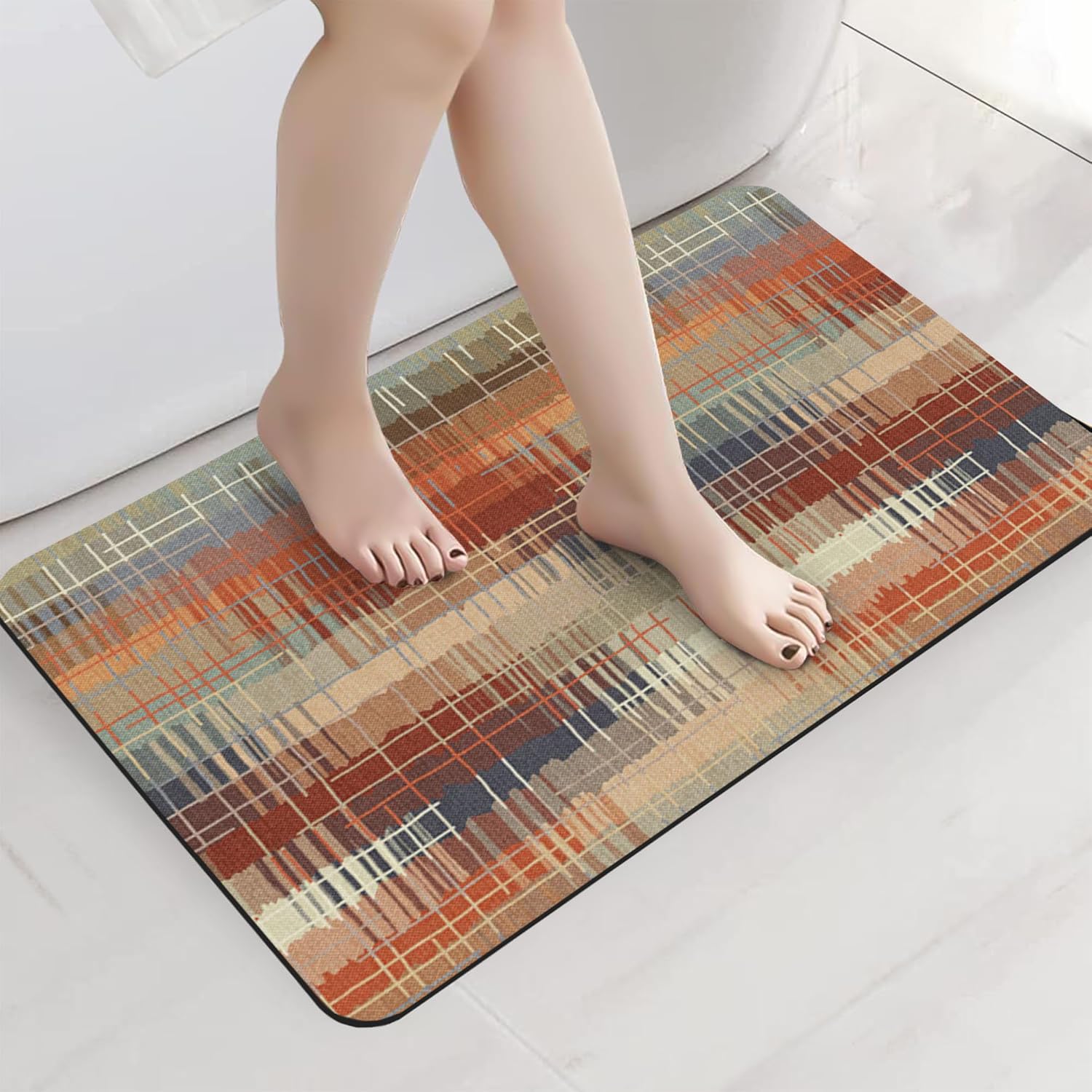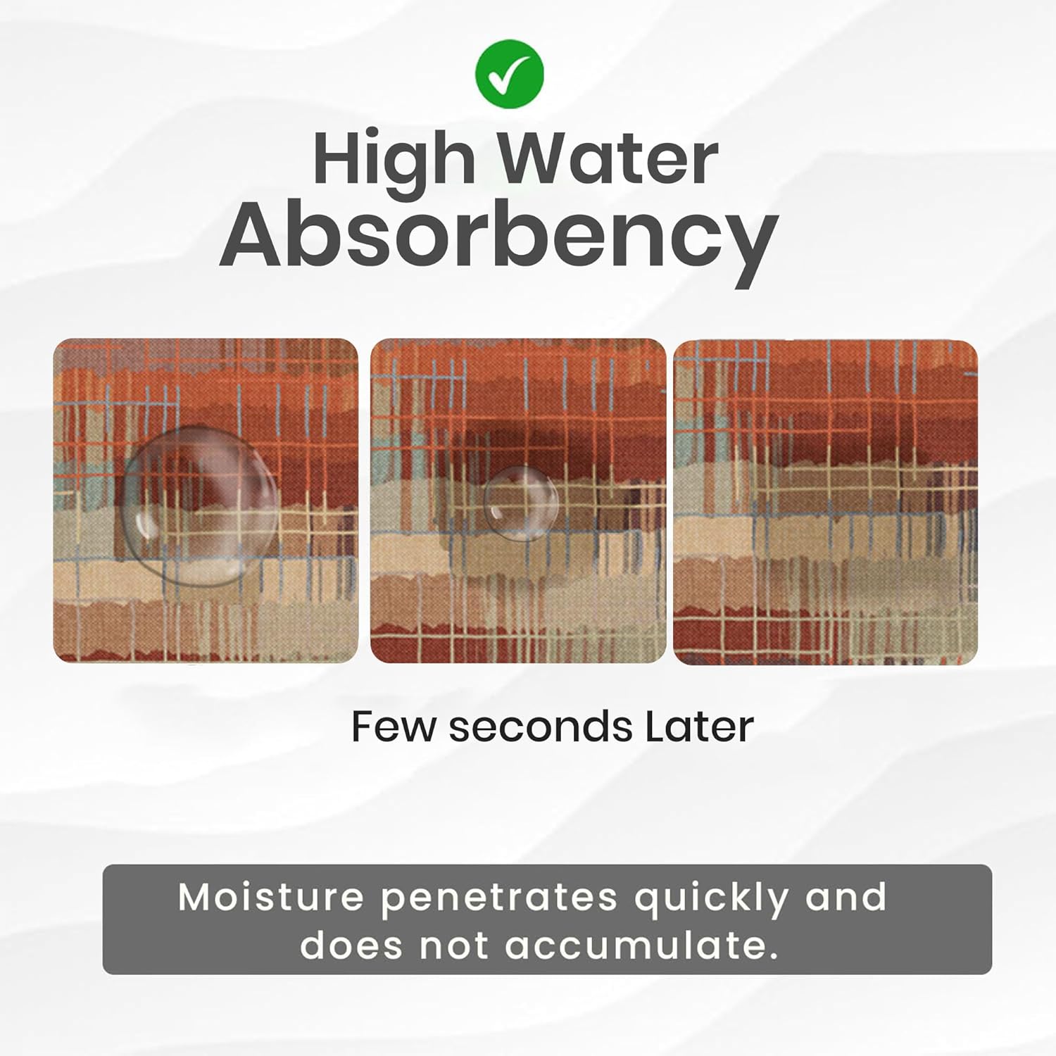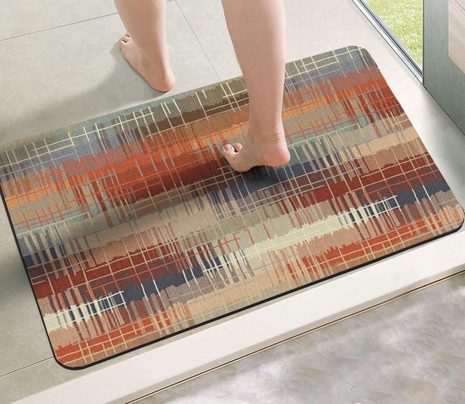 MATERIAL: Rubber Mat has 4 Layers: Soft Tech Fabric Top, Diatomaceous Earth Layer for Quick Drying, Recycled Sponge Layer for Cushioning and Non-Slip Rubber Sole Bottom for Safety in the Bathroom.