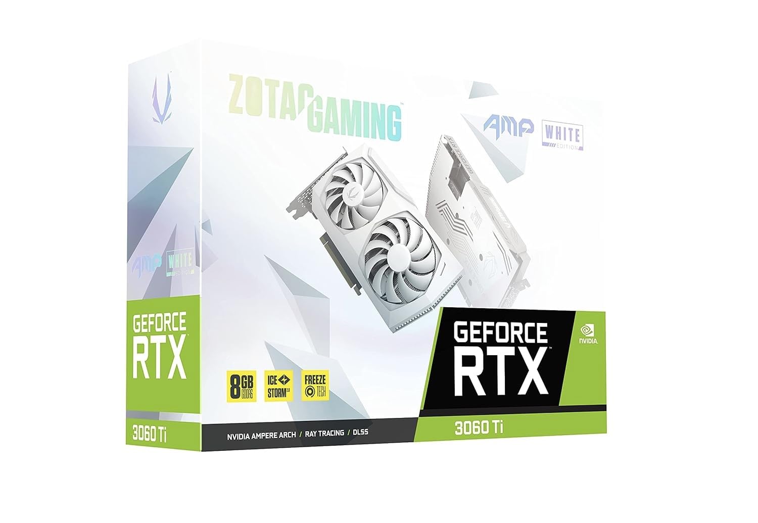 Experience Next-Level Gaming with the Z0TAC Gaming GeForce RTX 3060 TI AMP White Edition Take your gaming performance to new heights with the Z0TAC Gaming GeForce RTX 3060 TI AMP White Edition. Featuring the powerful NVIDIA Ampere architecture, this GPU delivers stunning visuals, real-time ray tracing, and AI-powered DLSS performance to dominate modern games in high detail and smooth frame rates. Designed for gamers who want performance and style, the sleek white shroud complements clean, minimal setups while keeping your system cool with advanced IceStorm 2.0 cooling technology. With a boost clock of up to 1867 MHz and 8GB of high-speed GDDR6 memory, this card is built for 1080p and 1440p gaming, multitasking, and creative workloads.