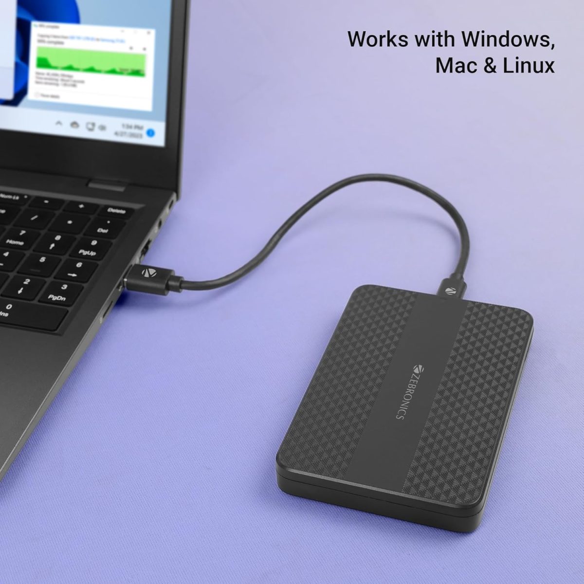 Zebronics 2.5″ SSD/HDD Enclosure, Max. 6TB Storage, Upto 5Gbps Transfer Speed, Tool-Free Slide Design, Type-C 3.1 Gen 1 Connector, Windows, Mac, Linux Support (CSH501)