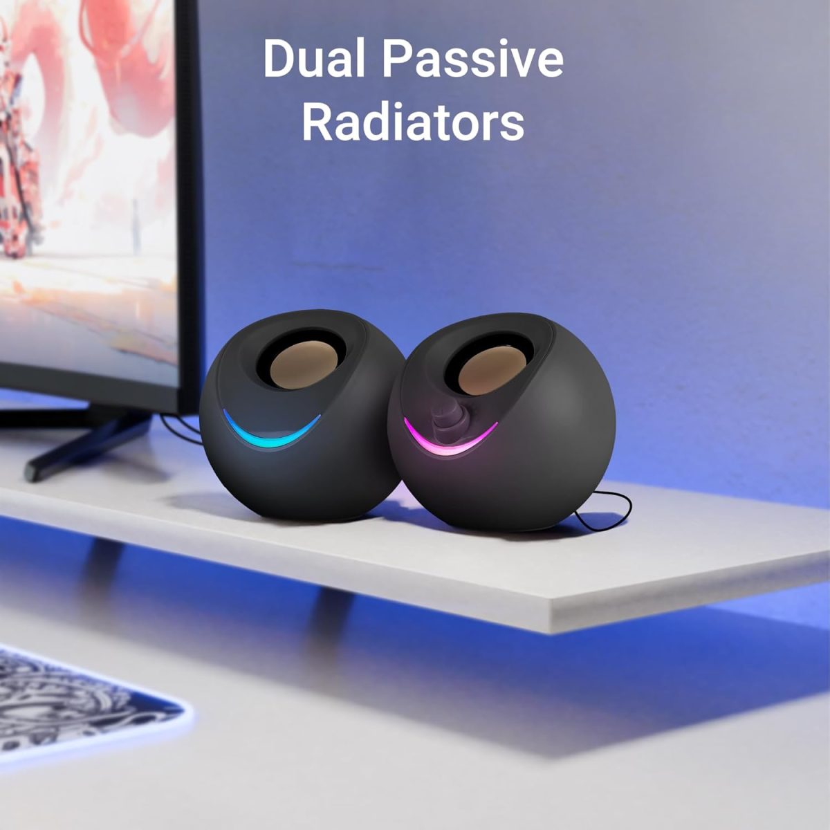 ZEBRONICS Blues 2.0 Computer Speakers, 8 Watts, 45° Elevated Drivers, Dual Passive Radiators, USB Powered, AUX, Volume Control Knob, RGB LED, for Laptops & Desktop (Black)