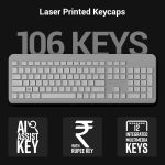 Keys: The keyboard is equipped with 106 keys including a Rupee key (₹), catering to users in regions using the Indian Rupee currency.