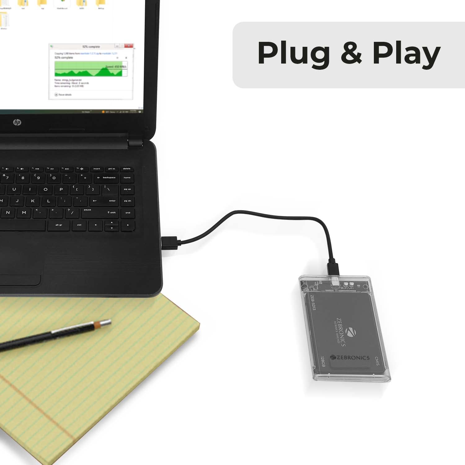 ZEBRONICS CSH01 2.5 SATA SSD Enclosure with Transparent case, Type C 3.1, Upto 5 gbps* and Upto 6TB Max Storage Capacity.