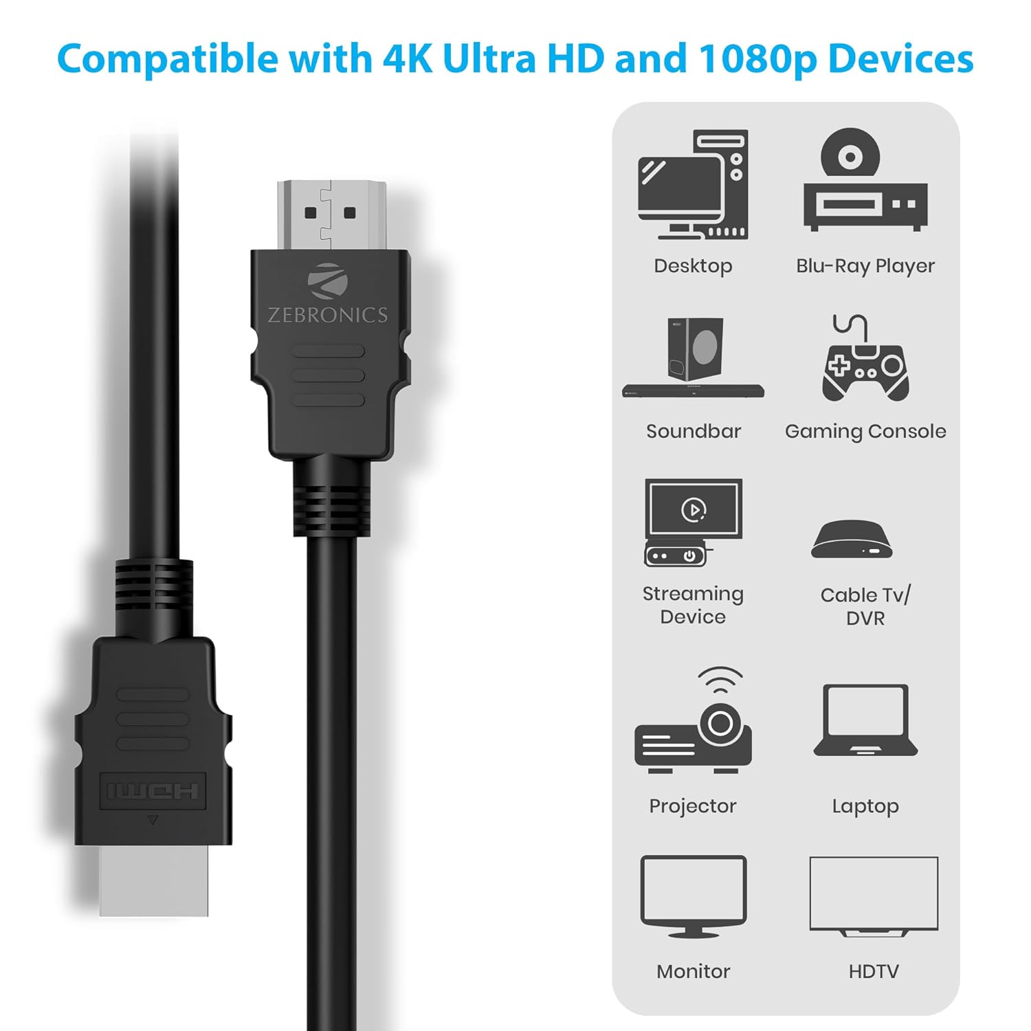 ZEBRONICS HAA1520C HDMI 2.0 Male to Male Cable, 1.5 Meter, 3D Compatible, 4K @ 60Hz, ARC, Strong & Durable, Compatible with TVs, displays, A/V Receivers, Blu-Ray Players, Computers, Playstation & more