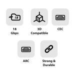 Compatible with HDMI-enabled devices like TVs, displays, A/V receivers, Blu-ray players, computers, Playstation & more Supports ARC & CEC extension