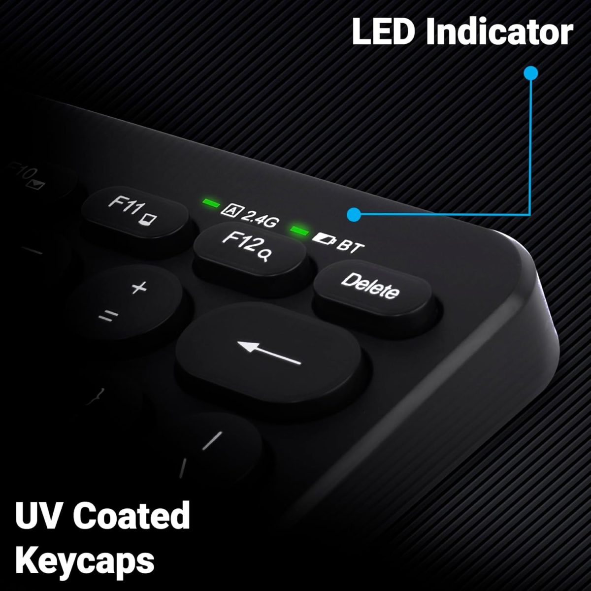 The dual BT connection of the keyboard allows you to switch between two different devices simultaneously, maximizing efficiency. Working in a 2.4GHz wireless connection, this keyboard is here to smoothen your workflow using a USB nano receiver with its easy plug-and-play technology. It also minimizes interference, contributing to a responsive and lag-free performance.