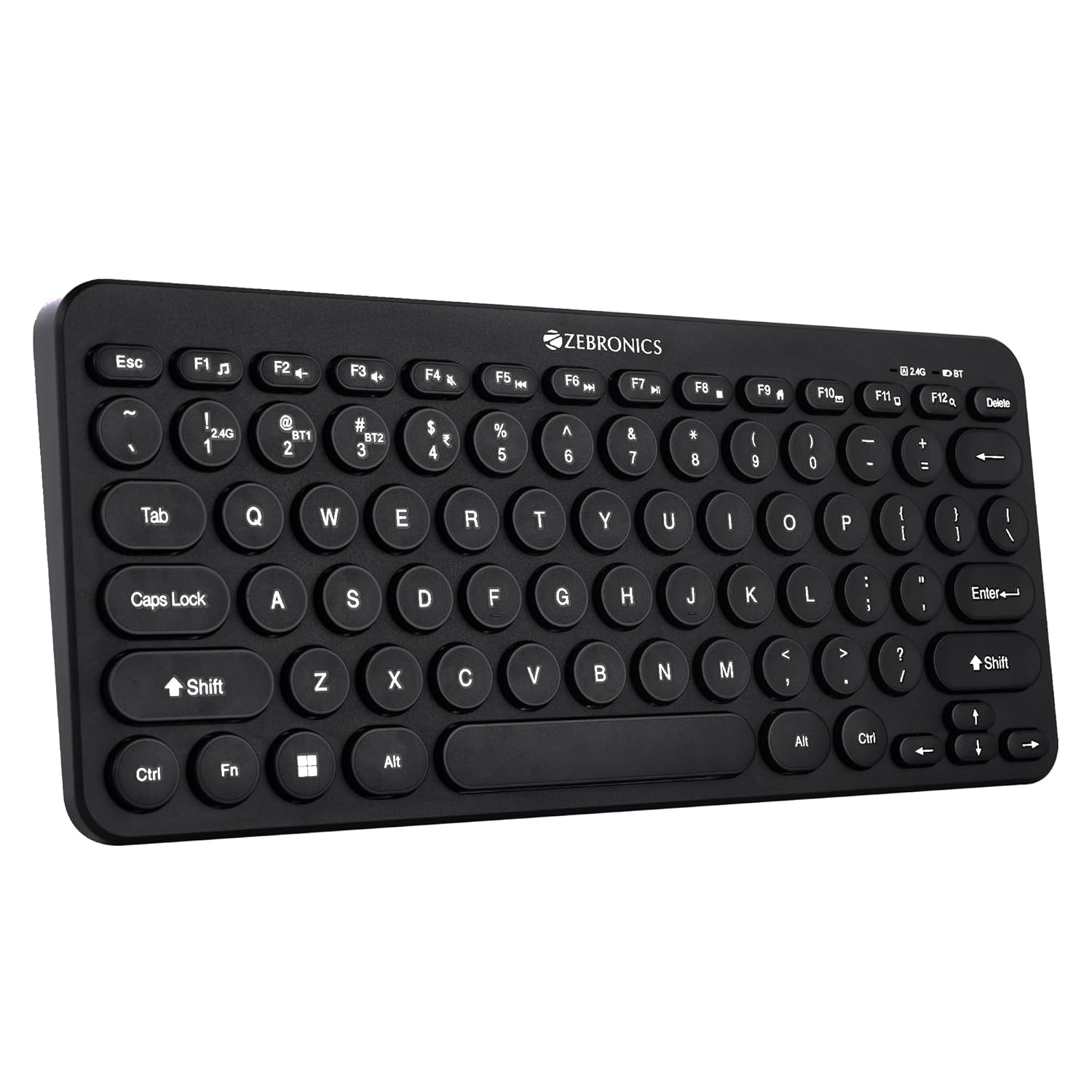ZEBRONICS K4000MW Wireless Keyboard with 2 Bluetooth & 2.4 GHz Wireless Connection,78 Keys, Integrated Multimedia Keys,Minimalist Design,Compatible with Laptop/Desktop/Tablet/Smartphone
