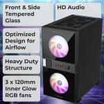 Efficient cooling: The chassis includes 3 pre-installed 120mm RGB fans – , an LED control switch, and space for 4 more 120mm fans