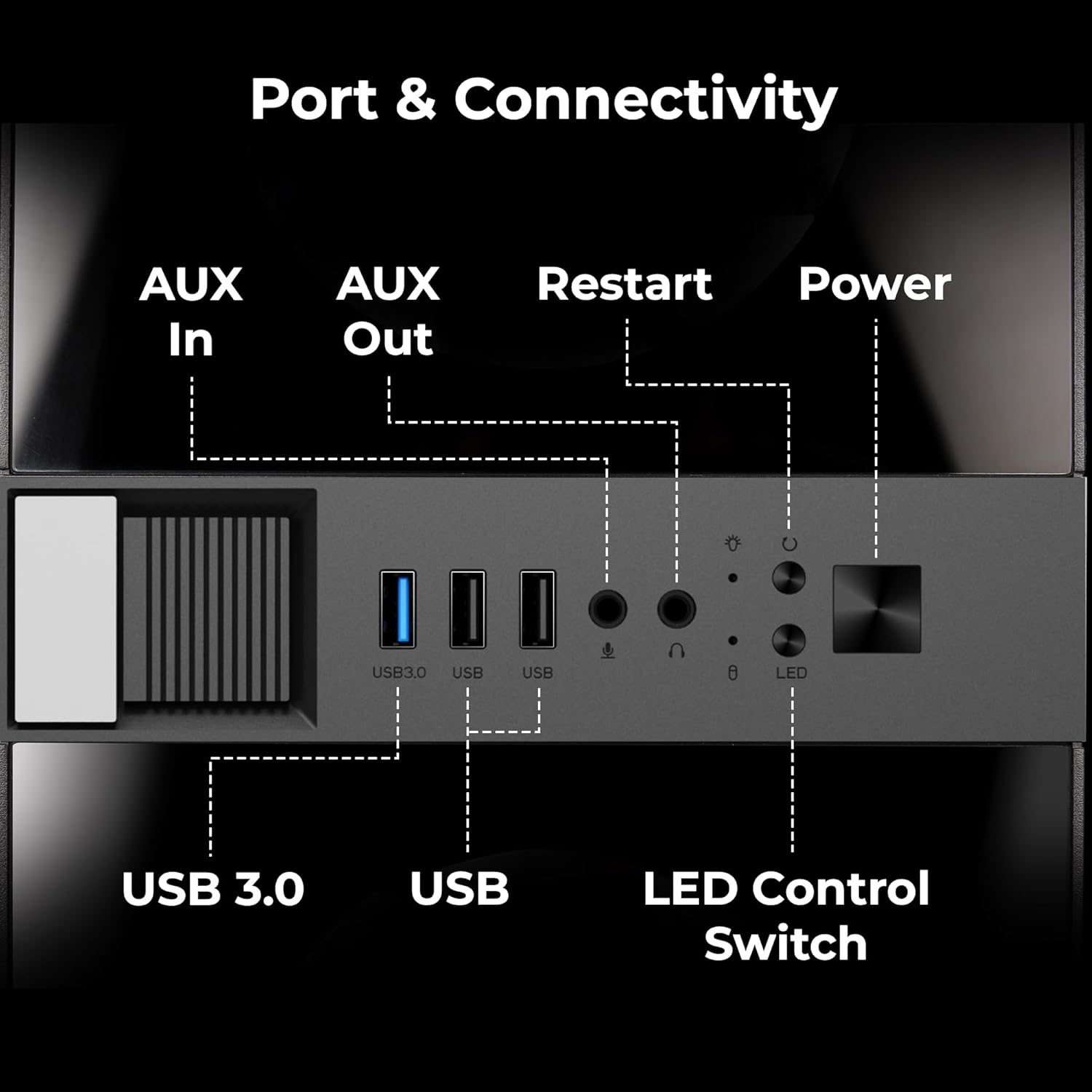 Multi Connectivity: The chassis features 1xUSB 3.0 port, 2xUSB ports, audio jacks, and 4 expansion slots