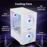 Efficient cooling: The chassis includes 3 pre-installed 120mm RGB fans – , an LED control switch, and space for 4 more 120mm fans