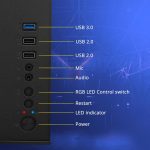 At the top section of the chassis, you’ll find a USB 3.0 port, along with two additional USB ports, as well as microphone and headphone jacks, offering a wide range of connectivity options.