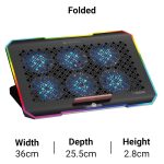Powerful cooling: To cool your laptop that releases excess heat due to overworking, the laptop stand is equipped with six 70mm fans. The fan speed of these fans can be adjusted to eliminate the dissipated heat and ensure optimal performance.