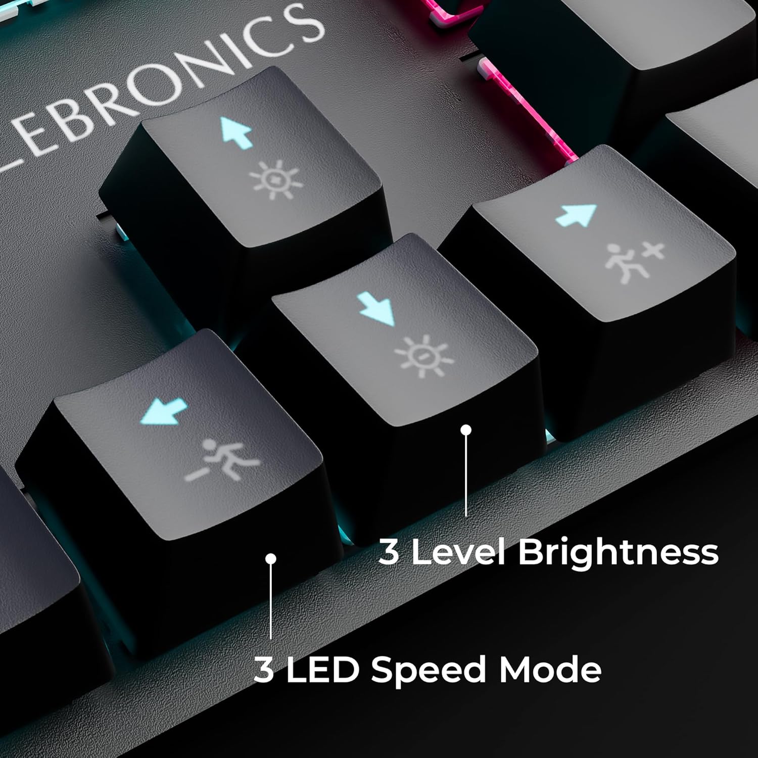 The ZEB-Nitro Plus mechanical keyboard offers a premium typing experience with its 104-key layout and tactile blue switches, ideal for both gaming and productivity. Featuring integrated multimedia keys for easy control of audio, video, and more. it also includes vibrant multicolor LED lighting with 12 LED modes, 3 brightness levels, and 3 LED speed modes. The 1.5m durable cable ensures reliable connectivity, while the Windows key disable/enable function for the windows key.