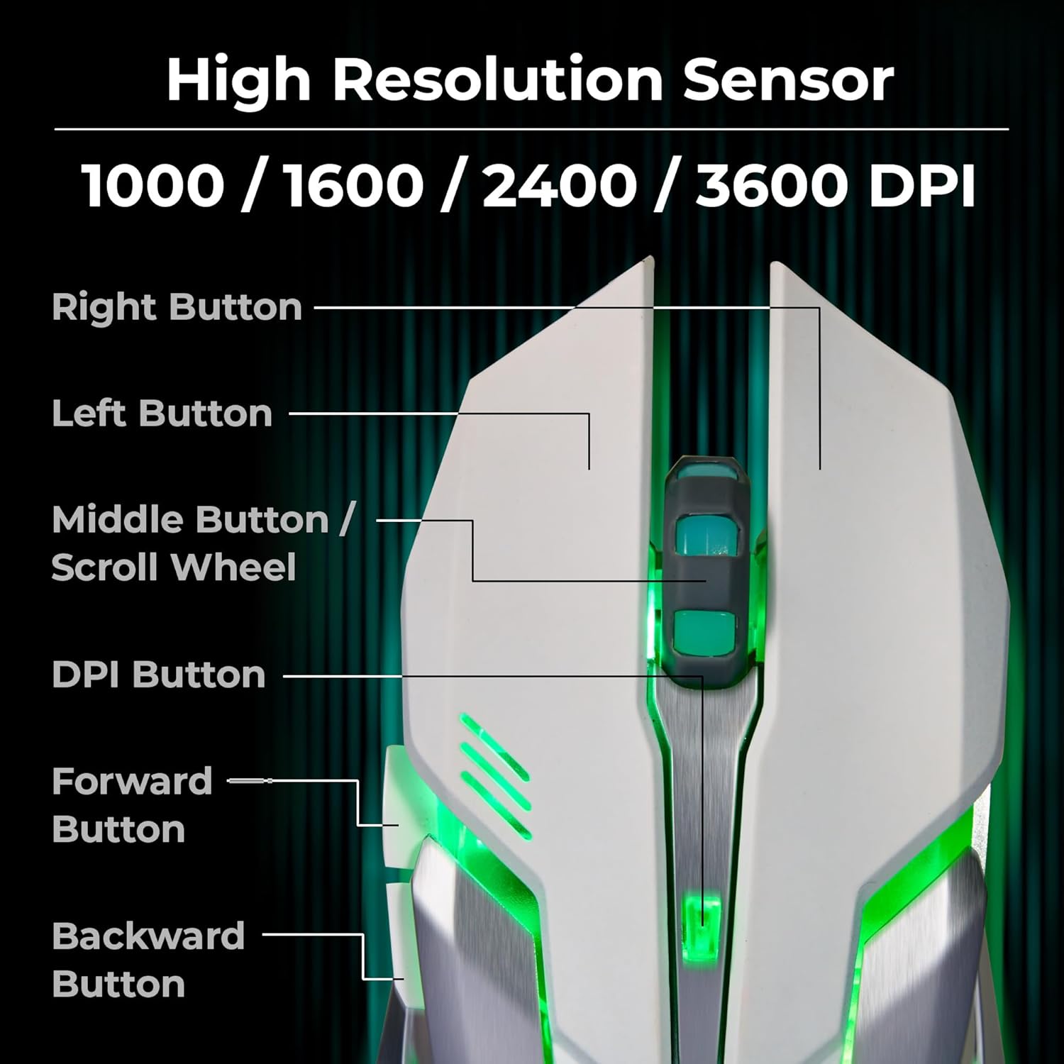 Providing enhanced control, the mouse includes dedicated buttons for DPI adjustment as well as forward and backward navigation, so your gaming is made easier