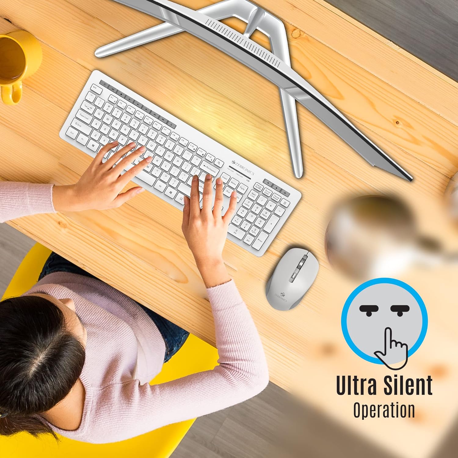 ZEBRONICS Zeb-Companion 500 2.4GHz Wireless Keyboard and Mouse Set, USB Nano Receiver, Chiclet Keys, Ultra Silent, Power On/Off Switch, Rupee Key, for PC/Mac/Laptop (White)