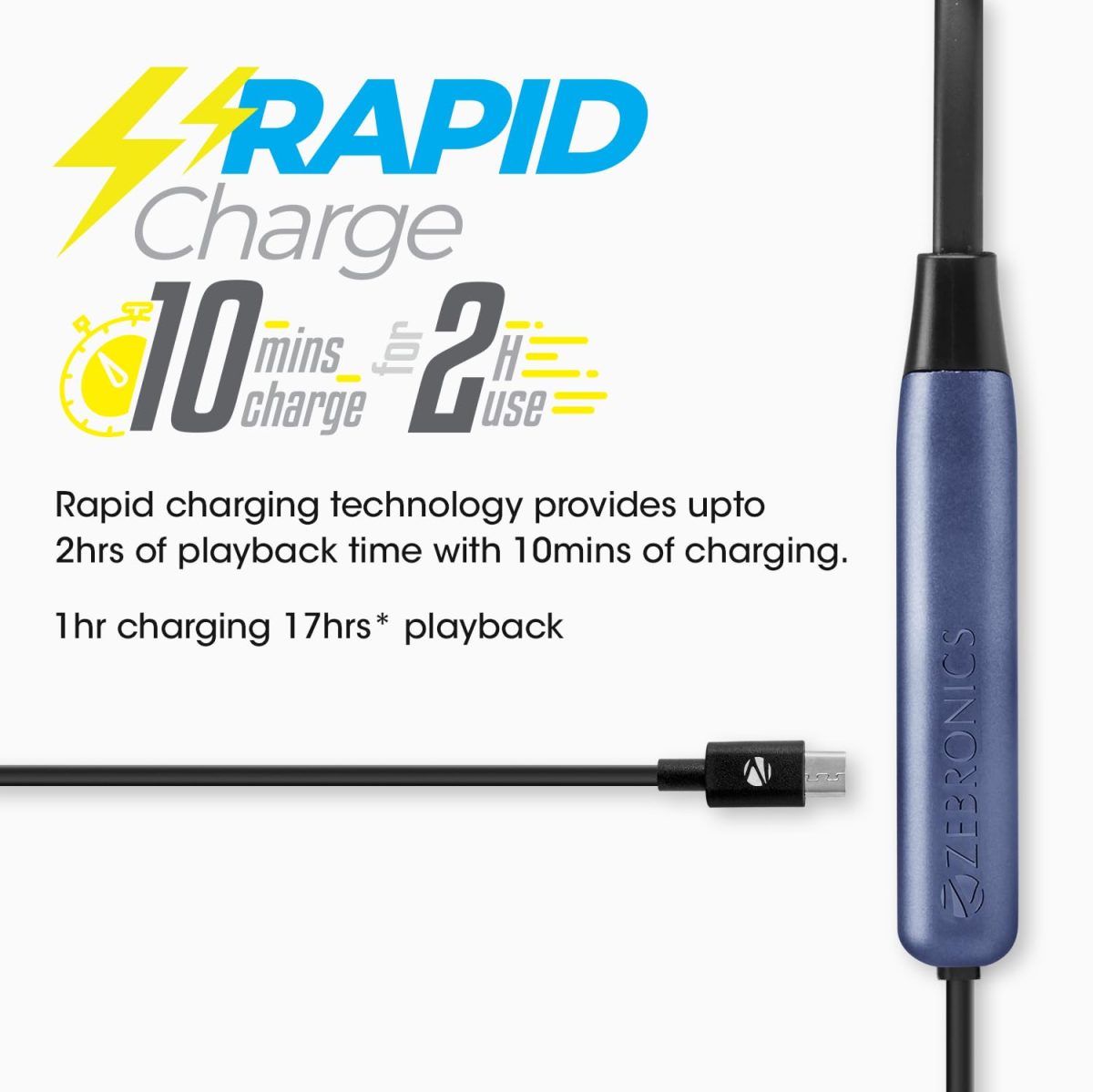 ZEBRONICS Zeb Evolve Wireless Bluetooth in Ear Neckband Earphone, Rapid Charge, Dual Pairing, Magnetic earpiece,Voice Assistant with Mic (Blue)
