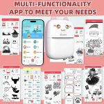 MINI BLUETOOTH THERMAL PRINTER: [Note: Please download the Fun Print app from the App Store before use.] ZEITEL Bluetooth inkfree thermal printer allow you can print out various photo, patterns, including lable and sticker, mini printer with App operation. Support both iOS and Android phone. Coming with 8 roll of print paper of 57x25mm, 5 roll of self-adhesive print paper and a set of stickers, meeting your various needs of printing, great value pack. BLUETOOTH INK-FREE PRINT TECH: Comparing the tradition ink print, this portable printer make applys thermal print tech, no need of ink, more conveneint and flexible to use. Upgrade bluetooth connection, you can download the designated App to print any contentyou want. Moreover, the App printer also allows you can take a picture of content through APP camera to print the content directly. The app has preset various templates for you to choose to creat various exquisite content. 200DPI RESOLUTION CLEAR PRINTING: High resolution fast printing, and continuous repeat printing can be done in one operation. Compatible with printing paper of 20-50mm width . Smooth printing, no stuck and jam. The lable maker machine outlet has a jagged cut for easier tear print paper off. Compared with the previous mini printer, the clarity is doubled. COMPACT AND PORTABLE: Our pocket printer’s size is only 110x80x30mm, convenient to hold and carry. You can put in pencil case, or any stationery bag, suitable for home, school, office use. In office, you can print your instant idea or schedual immediately, record those important things or classfy items with different lables or stickers. In home, you can use it to classfy various item, food containter, item marker, etc. STYLISH CARTOON BLUETOOTH PRINTER: Our bluetooth thermal printer is USB charing, built in 1200mAh battery, can be powered by powerbank or connecting any adapter. Perfect for labeling file folders, food storage, organizing clothes, food containters, jars, bottles, etc. Cute cartoon design of also adds a touch stylish to this printer, making it a nice gift for students, kids, and anyone who values the functionality and fashion.