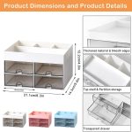 PREMIUM MATERIAL : This plastic desk organizer is made of high quality ABS material, non-toxic and tasteless, the material is tough and especially durable, smooth edges, safe to use for long term.MULTIPLE STORAGE SPACE : Small body with large capacity, great desktop assistant contains 4 Sections and 4 drawers, different compartments allow you to place items according to your needs, transparent drawers allow you to quickly find what you need, easy to place and take.APPLICABLE OCCASIONS : It can organize your dresser lotion, makeup brushes, lipstick, nail polish, cosmetics. Also great for organizing your desk stationery such as calculators, notepads, paper clips, pencils, scissors, flipcharts, business cards, notes and other small items.