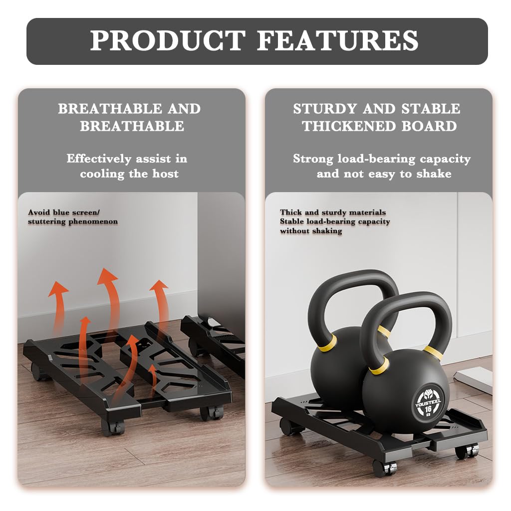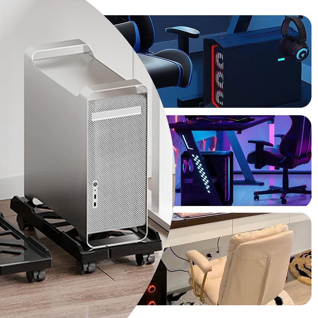 VERSATILE MOBILE DESK STAND: Designed to hold not just computer towers but also game consoles, planters, decorative ornaments, and more, this mobile desk stand fits seamlessly into home offices, living spaces, and gaming rooms. Its multifunctional nature lets you maximize organization and utility across a variety of settings.