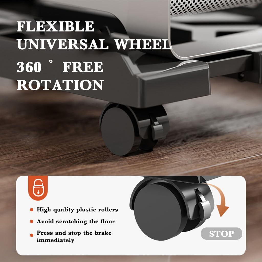 MOBILE AND FLEXIBLE: Equipped with four durable caster wheels, this cpu stand allows for effortless mobility in any direction. Easily move your CPU tower, game console, or other items without heavy lifting, making it simple to access ports, clean your workspace, or rearrange your setup as needed.