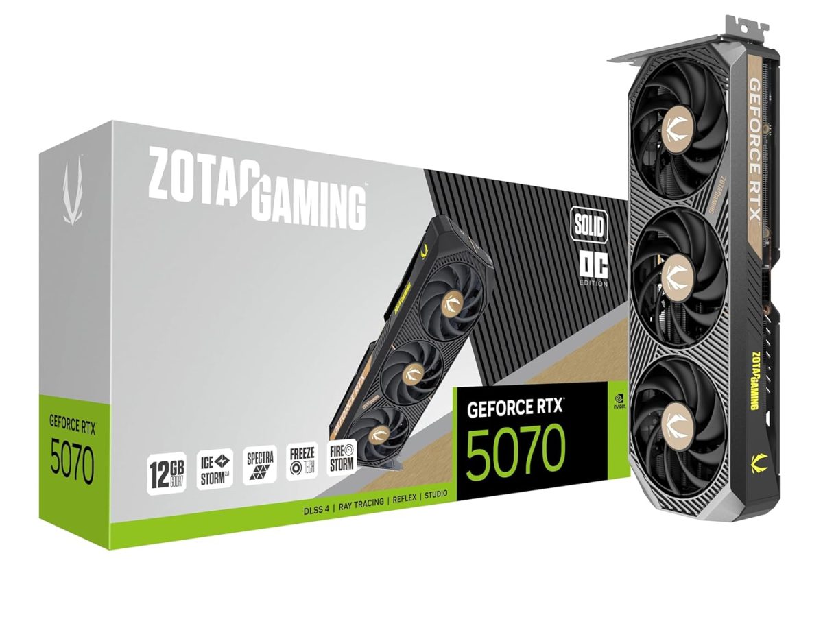 ZOTAC Gaming Geforce RTX 5070 Solid OC Graphics Card – Black | 12 GB | DLSS 4 | GDDR7 | 192 Bit | Icestorm 2.0 Advanced Cooling | Triple Fan | ZT-B50700J-10P